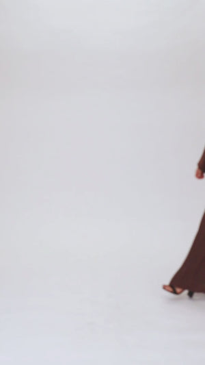 Chocolate Brown Embroidered Open Abaya