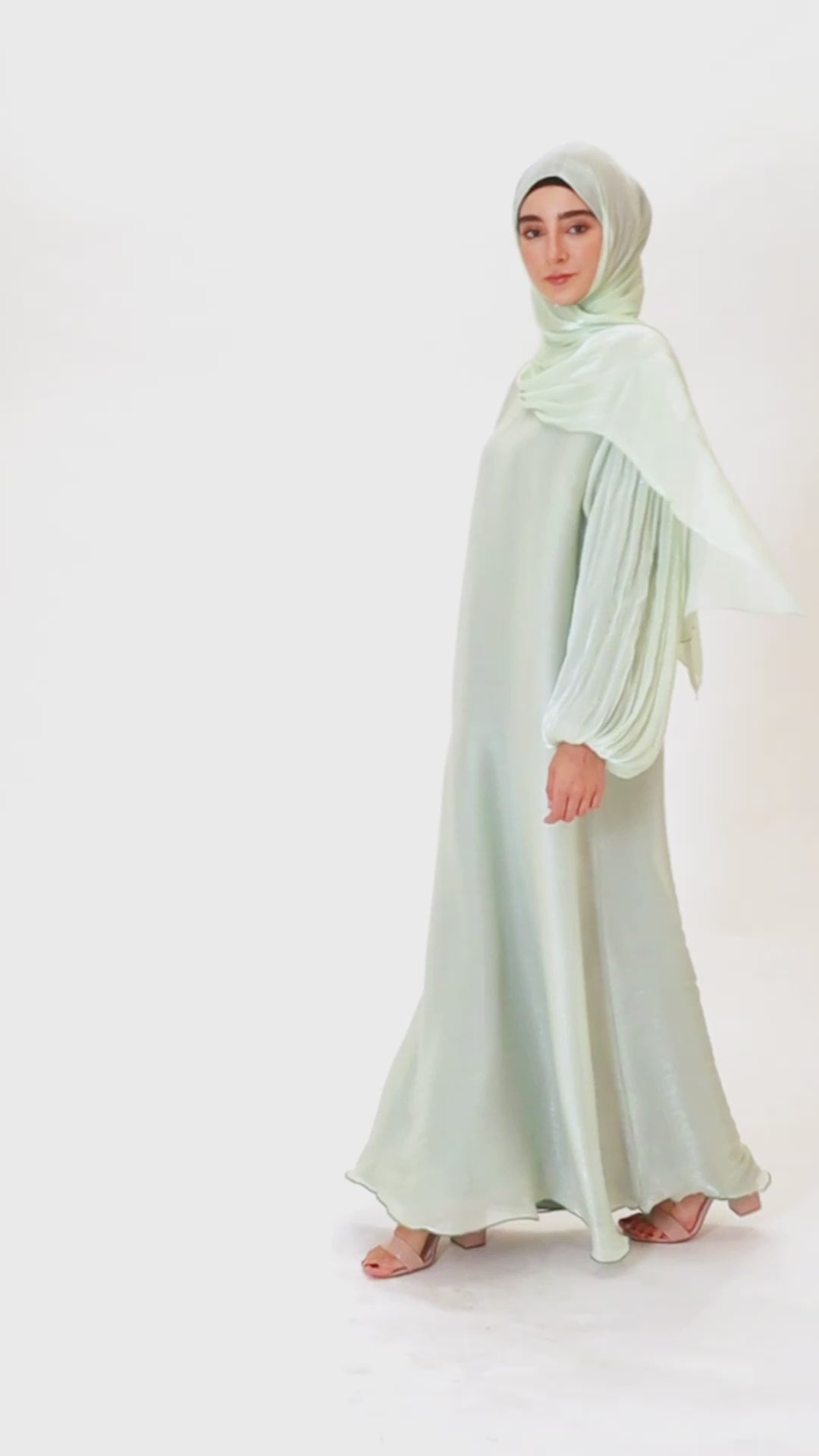 Introducing the Mint Organza Dainty Embellished Closed Abaya, crafted from premium organza silk. This abaya features a soft mint hue and shimmers beautifully. The standout balloon elasticated sleeves are adorned with dainty star embellishments, adding a touch of elegance and charm. Lined with a soft, lightweight fabric, this abaya ensures ultimate comfort and breathability making it perfect for summer and holidays.
